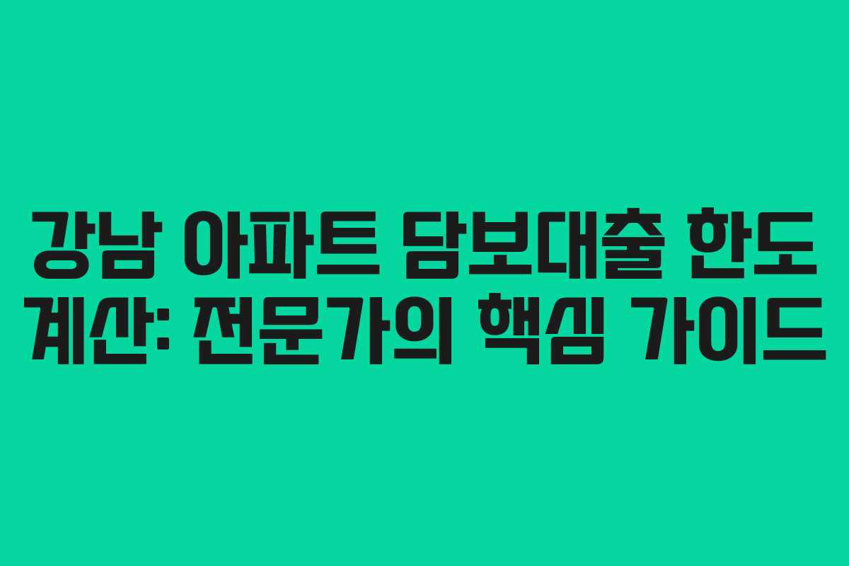 강남 아파트를 구매하고자 하시는 분들에게 담보대출은 중요한 요소입니다. 본 가이드는 복잡한 규제와 높은 아파트 가격 속에서 최적의 대출 한도를 계산하고 활용하는 방법을 상세히 설명합니다.