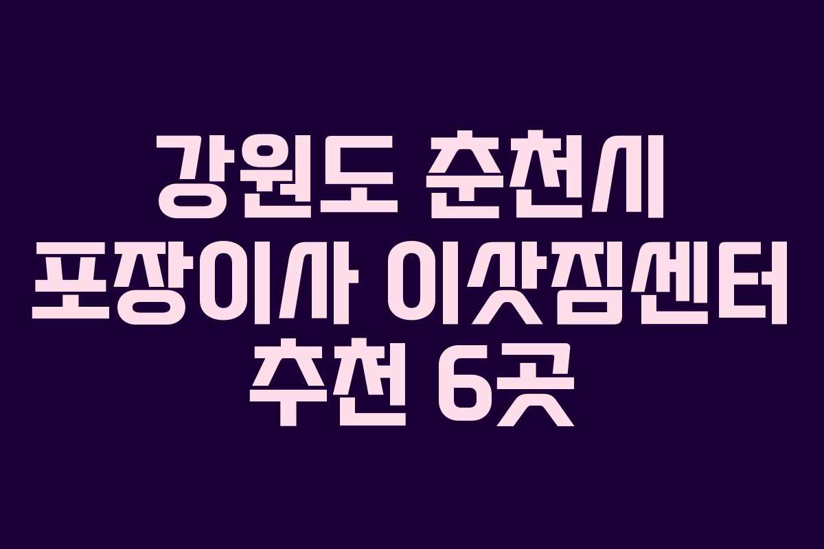 강원도 춘천시 포장이사 이삿짐센터 추천 6곳