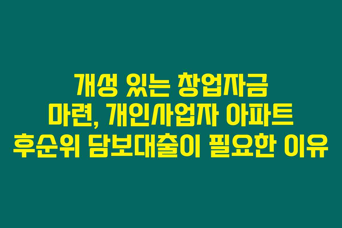 1. 개인사업자 아파트 후순위 담보대출의 개념