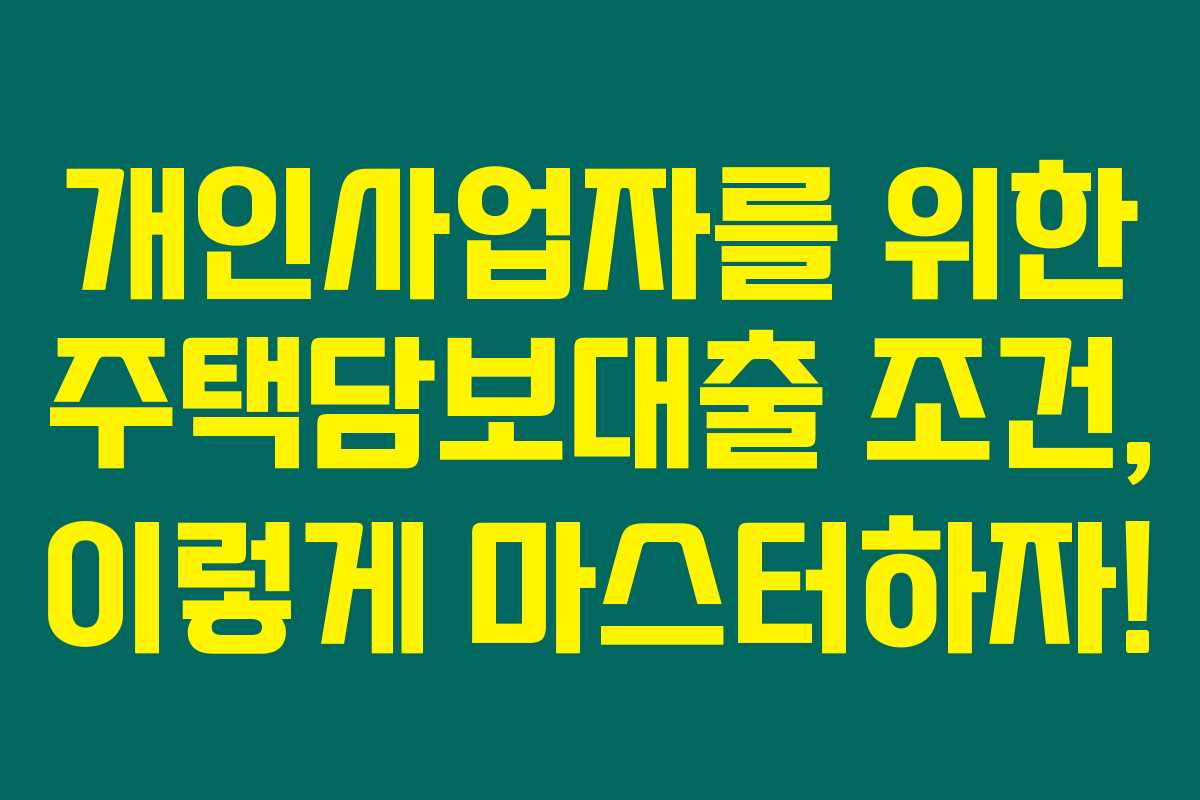 개인사업자 주택담보대출 조건, 대출 한도, 금리, 필요한 서류, 승인 팁 등 다양한 정보를 통해 보다 나은 선택을 하시길 바랄게요!