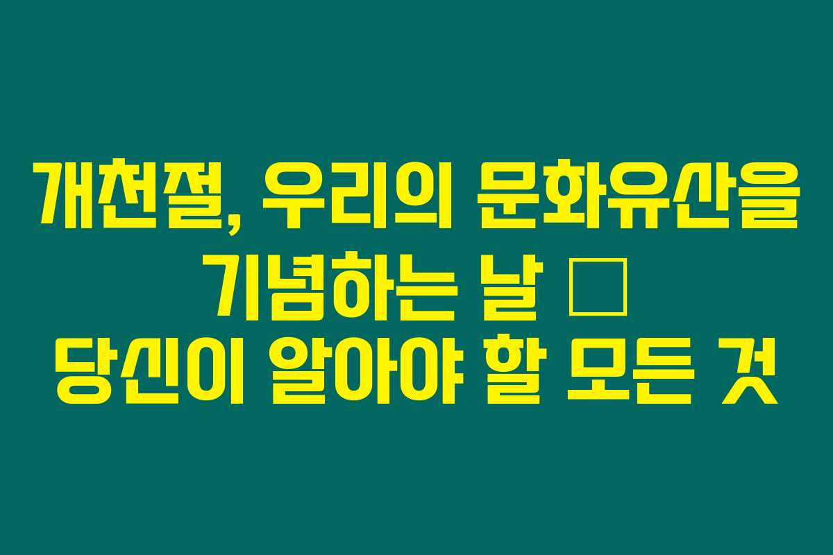 10월 3일은 개천절입니다. 이 날이 단순한 공휴일인지 아니면 집에서 책을 읽거나 TV를 보는 날인지 고민하고 계신가요? 개천절에 대한 모든 내용을 한눈에 확인할 수 있는 기회를 놓치지 마세요! 아래를 읽어보시면, 개천절의 의미와 함께 특별한 활동도 알아두실 수 있어요.
