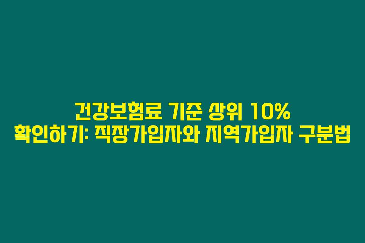 제가 직접 경험해본 결과로는, 건강보험료 기준 상위 10%에 해당하는지 알아보는 것은 매우 중요한 정보에요. 특히 직장가입자와 지역가입자의 기준이 서로 다르기 때문에, 정확한 수치를 아는 것이 필요하답니다. 아래를 읽어보시면 각 기준과 확인 방법을 알기 쉽게 정리해드릴게요.