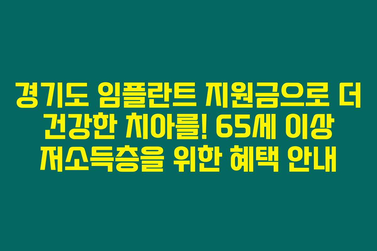 치아 건강이 우리의 삶의 질에 미치는 영향은 매우 큽니다. 특히 노년층에게는 건강한 치아가 영양 섭취와 일상생활에서의 저작 기능을 유지하는 데에 필수적이지요. 제가 직접 경험해본 결과, 임플란트 시술이 필요한 경우 그 비용이 상당한 부담이 될 수 있지만, 다행히도 경기도에서는 이러한 부담을 덜어줄 수 있는 다양한 임플란트 지원 제도를 마련하고 있습니다. 아래를 읽어보시면 65세 이상 및 저소득층을 위한 경기도의 지원 혜택에 대해 상세히 알 수 있습니다.