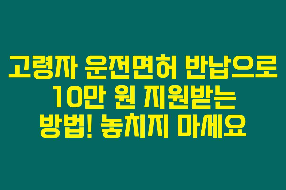 고령자 운전면허를 반납하면 10만 원을 지원받는다는 사실 알고 계셨나요? 대중교통을 더 안전하고 편리하게 이용하게 될 수 있으니 이 기회를 놓치지 마세요! 아래를 읽어보시면, 고령자 운전면허 반납 혜택에 대한 자세한 정보를 알게 될 거예요.