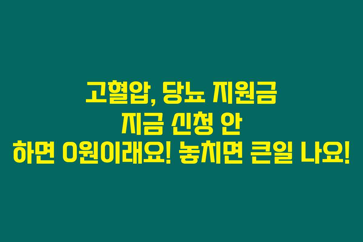 제가 알아본 바로는, 고혈압이나 당뇨병을 앓고 계신 분들은 지금 신청하지 않으면 지원금이 0원이 되는 상황이랍니다. 이런 중요한 혜택을 놓치지 않도록 지금 바로 확인해보세요. 제 경험상 건강관리가 중요한 만큼, 정부에서 제공하는 지원도 잘 활용하는 것이 매우 중요하답니다. 아래를 읽어보시면 지원금 신청 조건과 방법에 대해 자세히 알아볼 수 있을 거예요.
