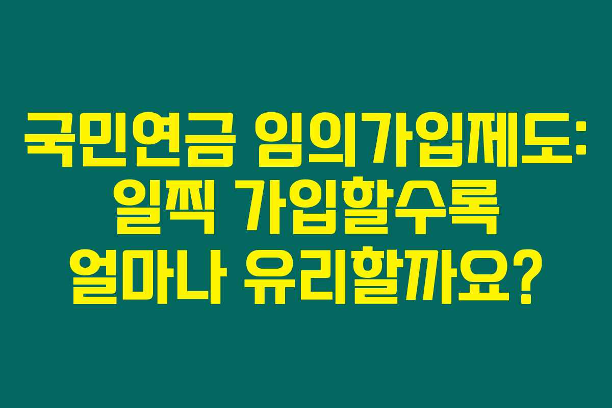 국민연금 임의가입제도: 일찍 가입할수록 얼마나 유리할까요?