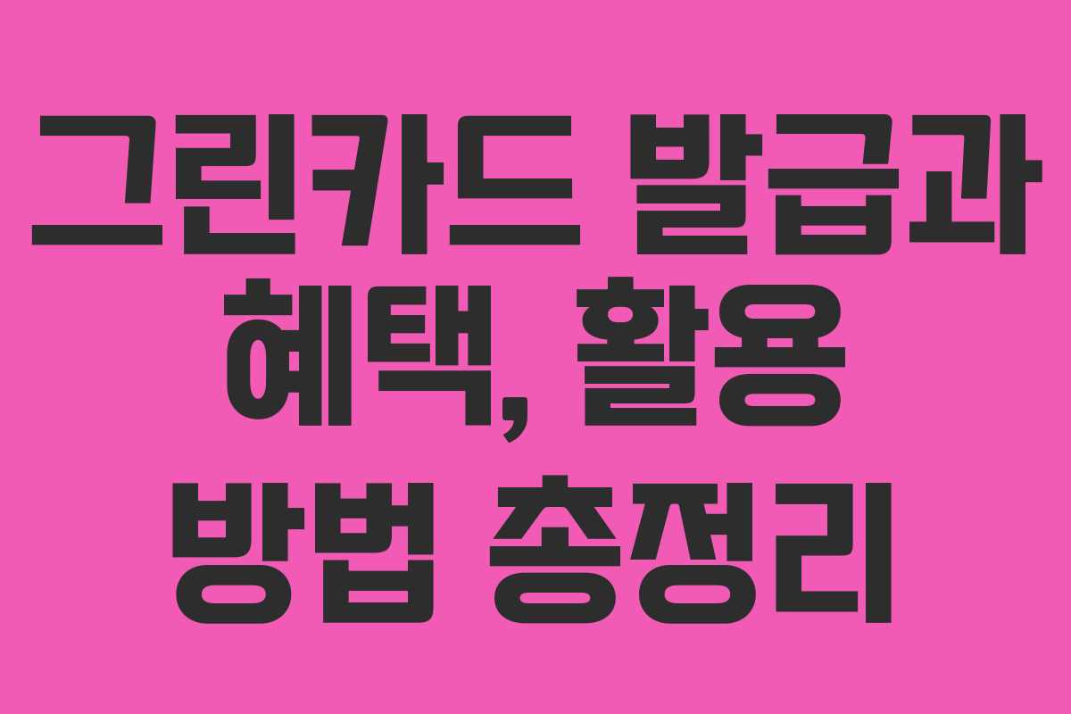 그린카드는 환경 보호를 지원하는 특별한 카드로, 다양한 혜택을 통해 친환경 소비를 촉진하고 있습니다. 이번 글에서는 그린카드의 발급 방법, 혜택, 그리고 활용 방법에 대해 자세히 알아보겠습니다.