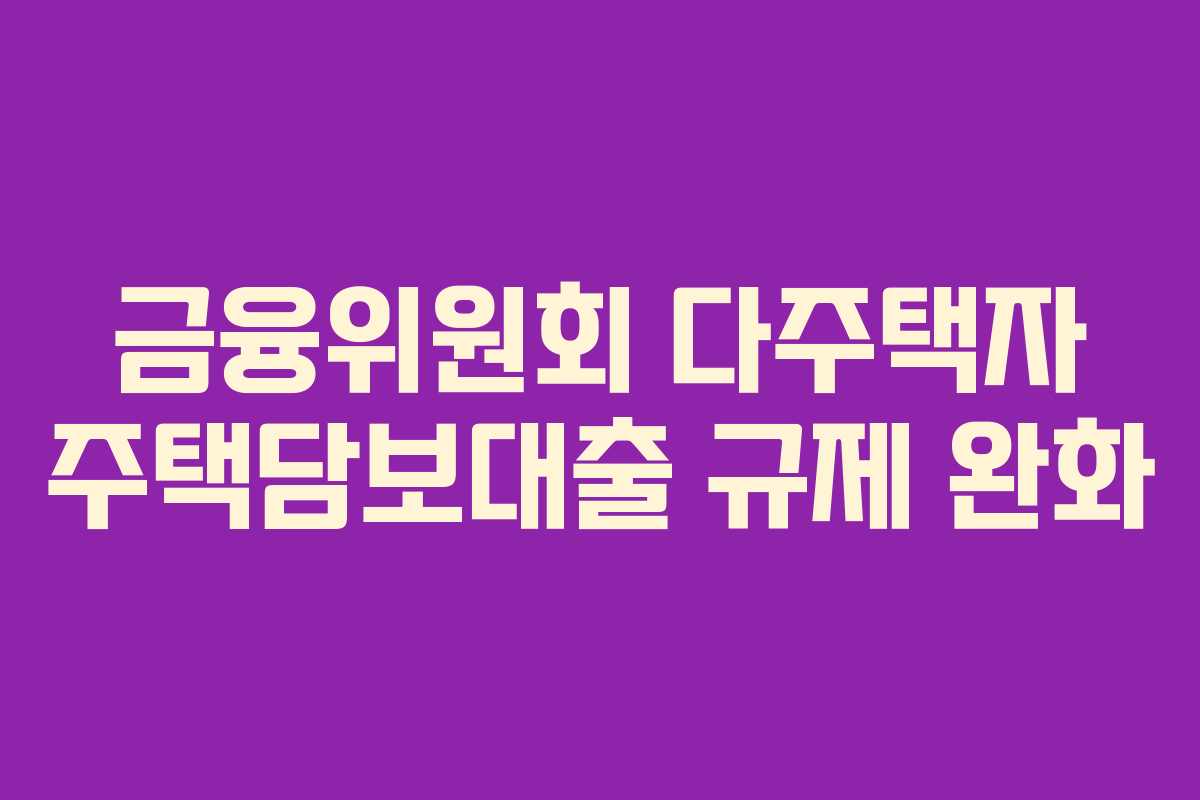 금융위원회는 2023년 2월 10일 보도자료를 통해 다주택자에 대한 주택담보대출 규제를 완화한다고 발표했습니다. 이번 조치는 주택시장 안정과 서민의 주거안정을 목적으로 하며, 구체적인 내용은 다음과 같습니다.
