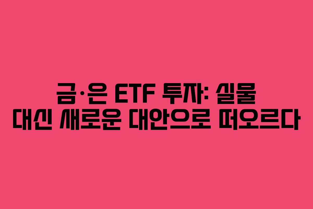 금·은 ETF는 실제 금속을 보유하지 않고 금이나 은 가격의 변동에 투자할 수 있는 금융 상품입니다.