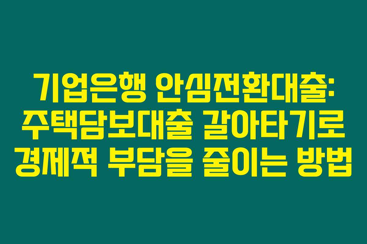 기업은행의 안심전환대출은 주택담보대출 갈아타기를 통해 금전적 부담을 줄일 수 있는 좋은 방법입니다. 이 시스템을 활용해 더 나은 경제적 여건을 만들어 나가는 것이 정말 스마트한 선택이 아닐까요? 주택담보대출을 고려하고 있다면, 전문가와 함께 자신의 상황에 맞는 적절한 대출 방법을 찾아보세요. 이제 더 이상 고민하지 마시고, 부담을 덜어주는 금융 선택을 해보세요!