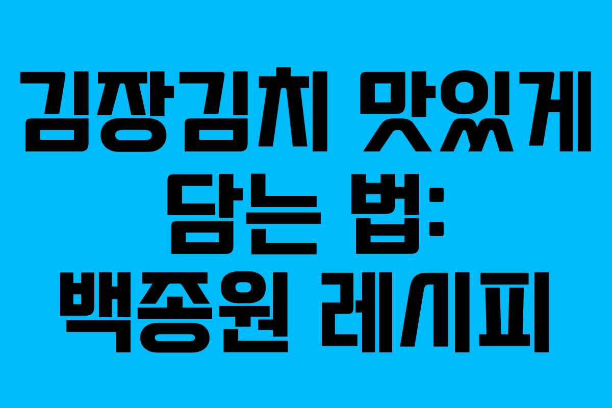 김장김치는 한국의 대표적인 겨울철 발효 음식으로, 백종원 레시피를 활용하면 누구나 쉽게 맛있고 건강한 김치를 만들 수 있습니다. 여기서는 백종원님이 제안하는 김장김치 담그는 방법을 소개합니다.