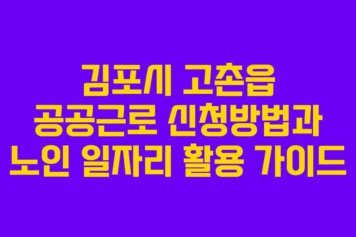 김포시 고촌읍의 공공근로를 활용하기 위해서는 다음과 같은 팁이 도움이 됩니다: