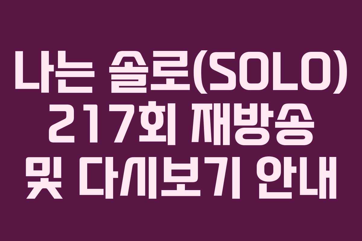최근 ENA 채널과 SBS Plus 채널에서 방영되고 있는 예능 프로그램 ‘나는 솔로’가 많은 인기를 끌고 있습니다. 특히, 28기 217회 돌싱특집은 시청자들의 큰 관심을 받고 있으며, 이 회차의 재방송과 다시보기 방법에 대해 알아보겠습니다.