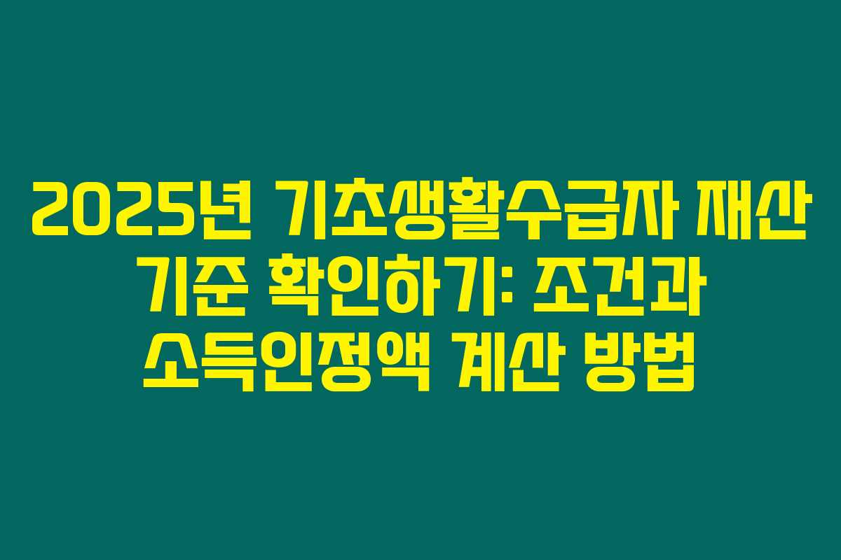 제가 직접 확인해본 결과, 2025년 기초생활수급자에 필요한 조건 및 재산 기준과 소득인정액 계산에 대한 정보는 매우 중요합니다. 아래를 읽어보시면 이와 관련된 내용이 잘 정리되어 있어 기초수급자 신청에 도움이 될 것입니다.