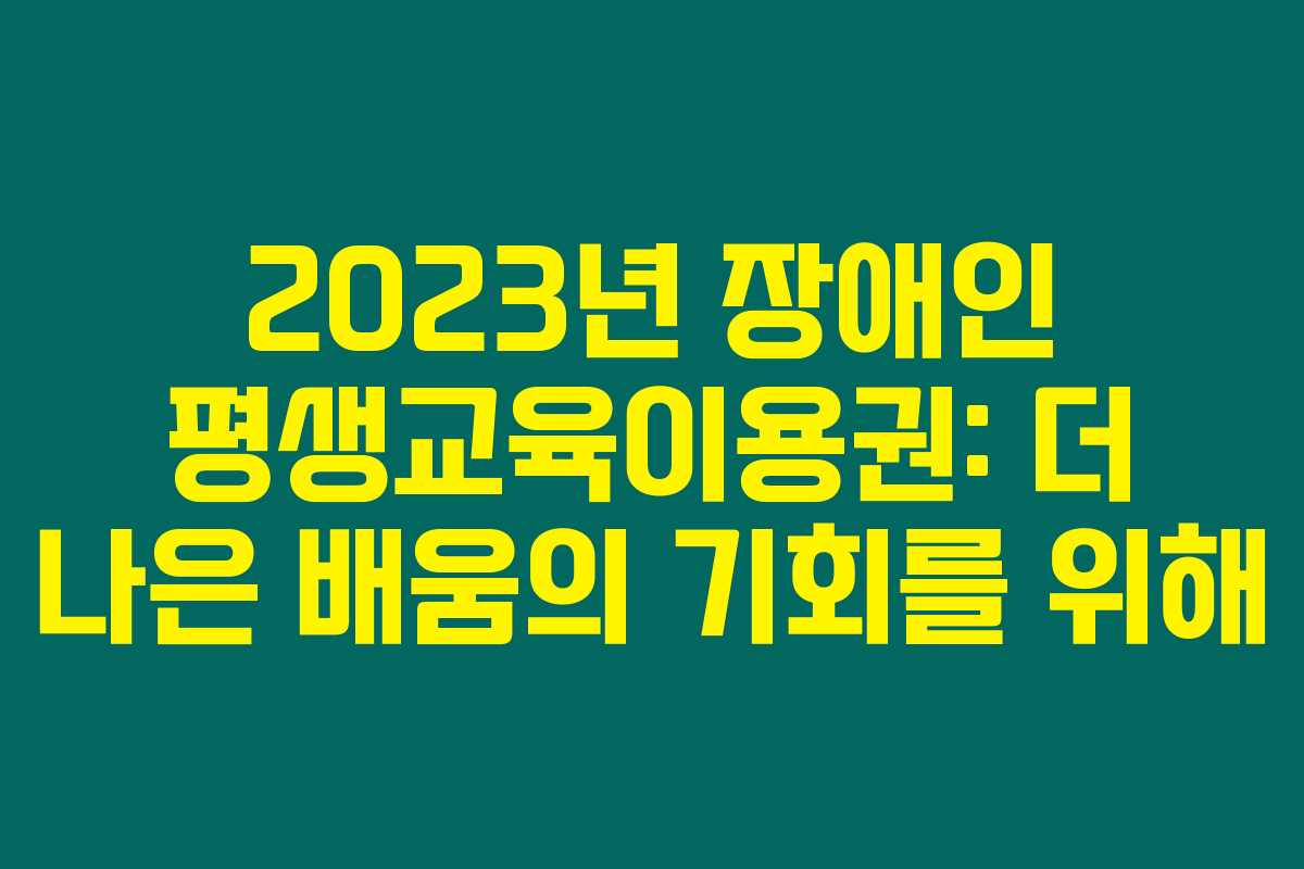 제가 직접 리서치한 바로는 2023년부터 만 19세 이상 장애인에게 제공되는 평생교육이용권이 장애인의 학습 기회를 넓히는 중요한 정책으로 자리잡고 있습니다. 이 글에서는 장애인 평생교육이용권의 신청 방법과 외부 조건, 그리고 기대되는 효과에 대해 자세히 알아보겠습니다. 아래를 읽어보시면 이 제도를 통해 더 많은 장애인들이 평생교육의 기회를 누릴 수 있게 되는 과정을 확인할 수 있어요.