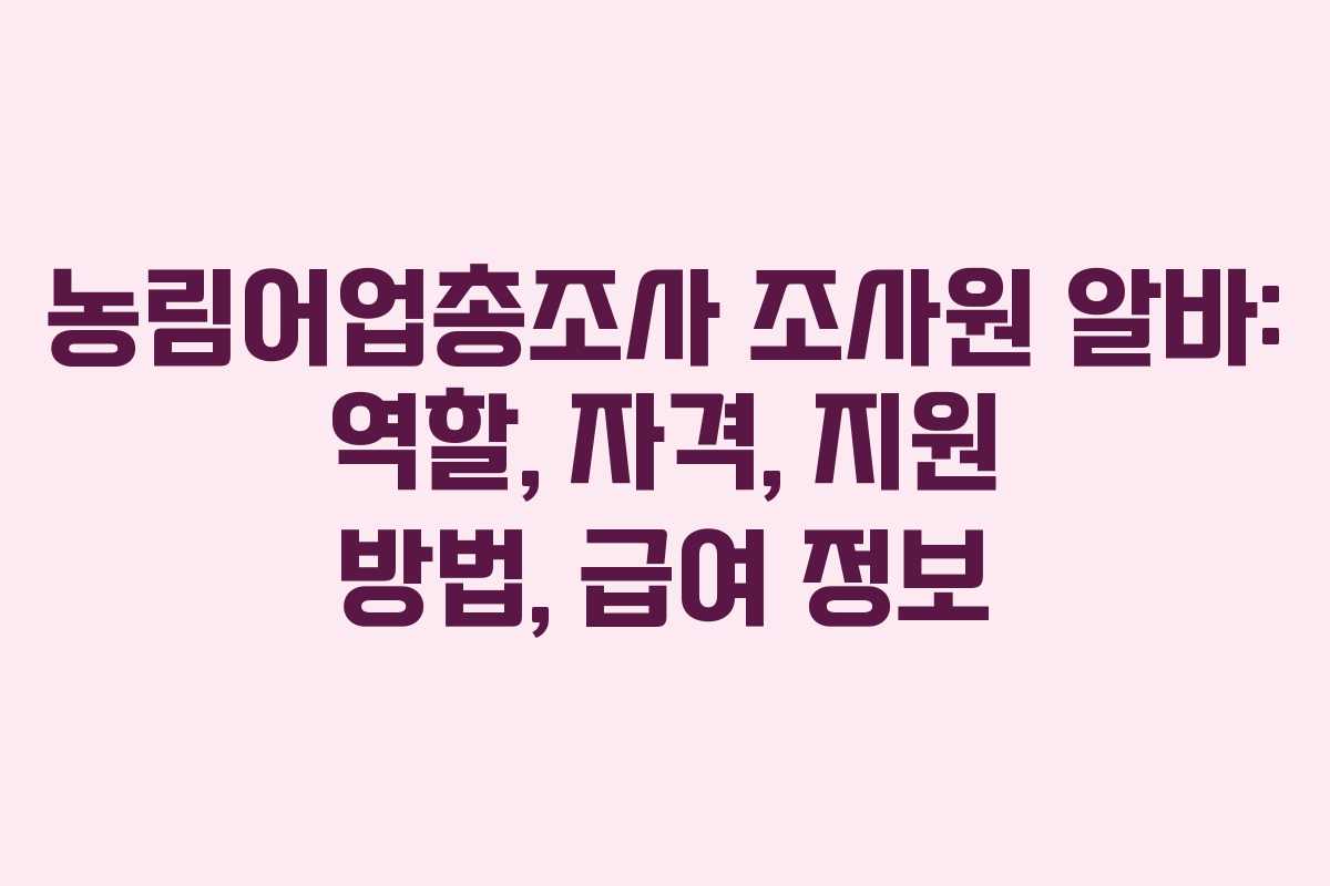 농림어업총조사 조사원 알바: 역할, 자격, 지원 방법, 급여 정보