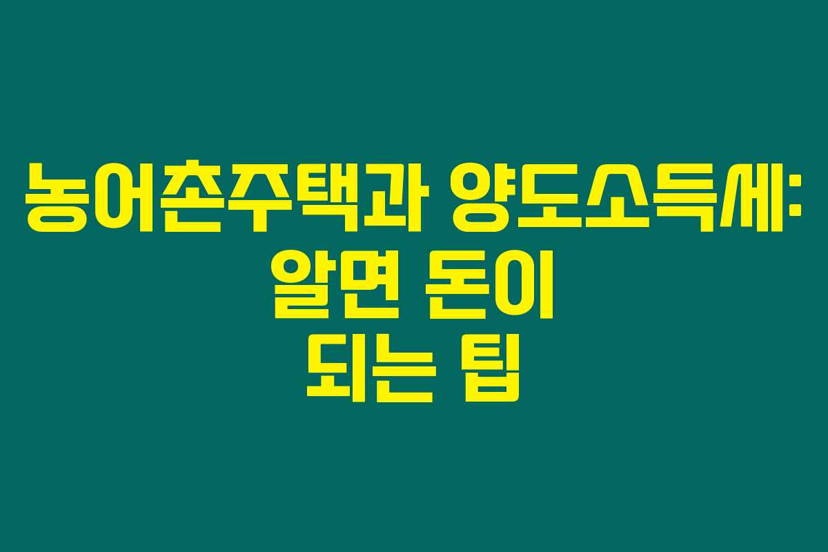 - 세금 감면: 농어촌주택은 양도소득세 감면 혜택을 받을 수 있습니다.