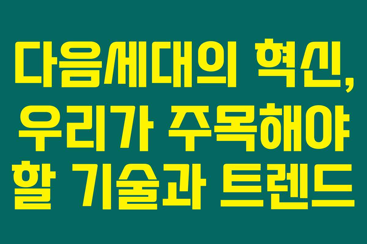 저는 다음세대 혁신이 우리 삶을 획기적으로 변화시키는 힘이라고 믿어요. 앞으로의 기술 발전이 더욱 나은 세상으로 나아가는 데 기여할 수 있기를 기대합니다. 여러분의 의견도 궁금하네요. 최근 경험한 혁신적인 기술이 있다면 댓글로 남겨주세요!