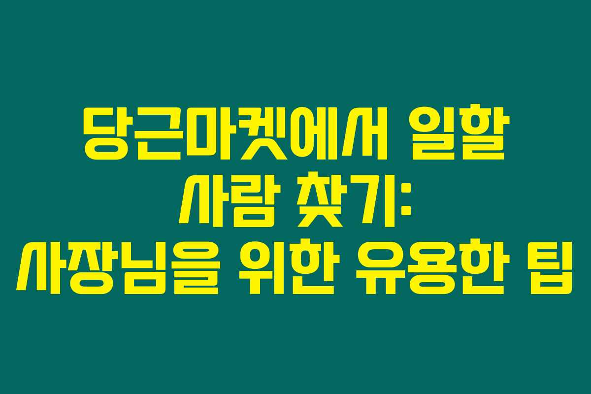 당근마켓에서 일할 사람 찾기: 사장님을 위한 유용한 팁