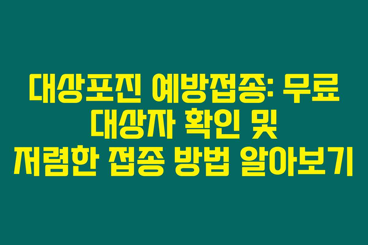 대상포진 예방접종은 비용이 비쌀 수 있어요. 그러나 가까운 곳에서 저렴한 가격에 접종할 수 있는 방법이 있답니다. 어떻게 할 수 있을까요?