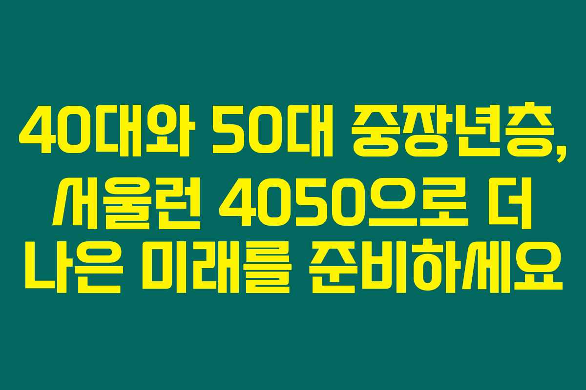 만약 40대와 50대 중장년층의 취업과 노후 준비에 대한 정보가 필요하다면, 아래 내용을 꼭 읽어보세요. ‘서울런 4050’은 중장년층이 행복한 노후를 준비하고 더 나은 일자리 기회를 얻을 수 있도록 도와주는 혁신적인 프로그램이에요.