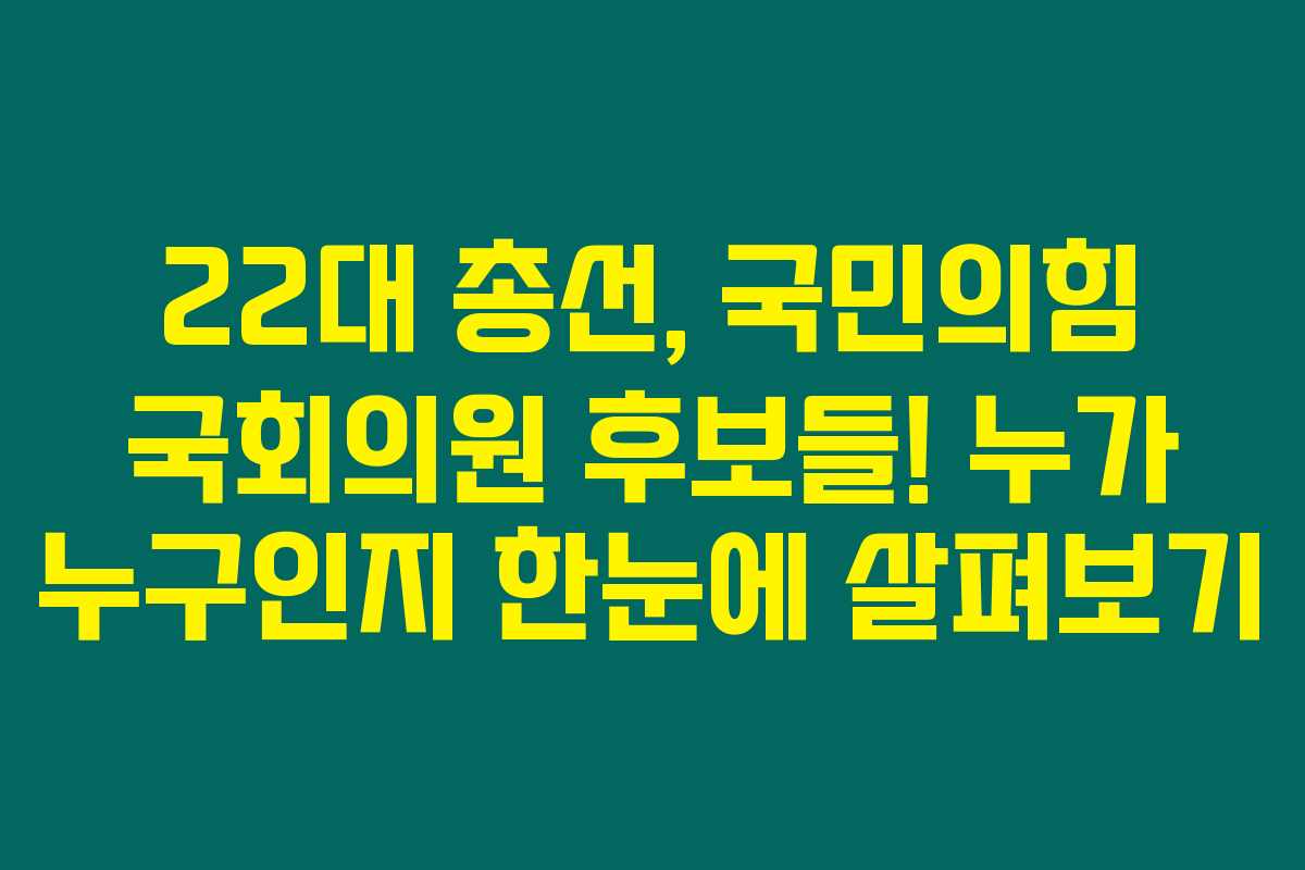 제가 직접 체크해본 바로는 2024년 4월 10일에 치러질 제22대 국회의원 총선거를 앞두고 국민의힘의 후보 명단이 공개되었습니다. 다양한 경력을 가진 후보들이 각 지역구에서 열띤 경쟁을 벌일 것으로 예상됩니다. 아래를 읽어보시면, 각 지역별 후보에 대한 정보와 그들의 배경을 알아볼 수 있습니다.