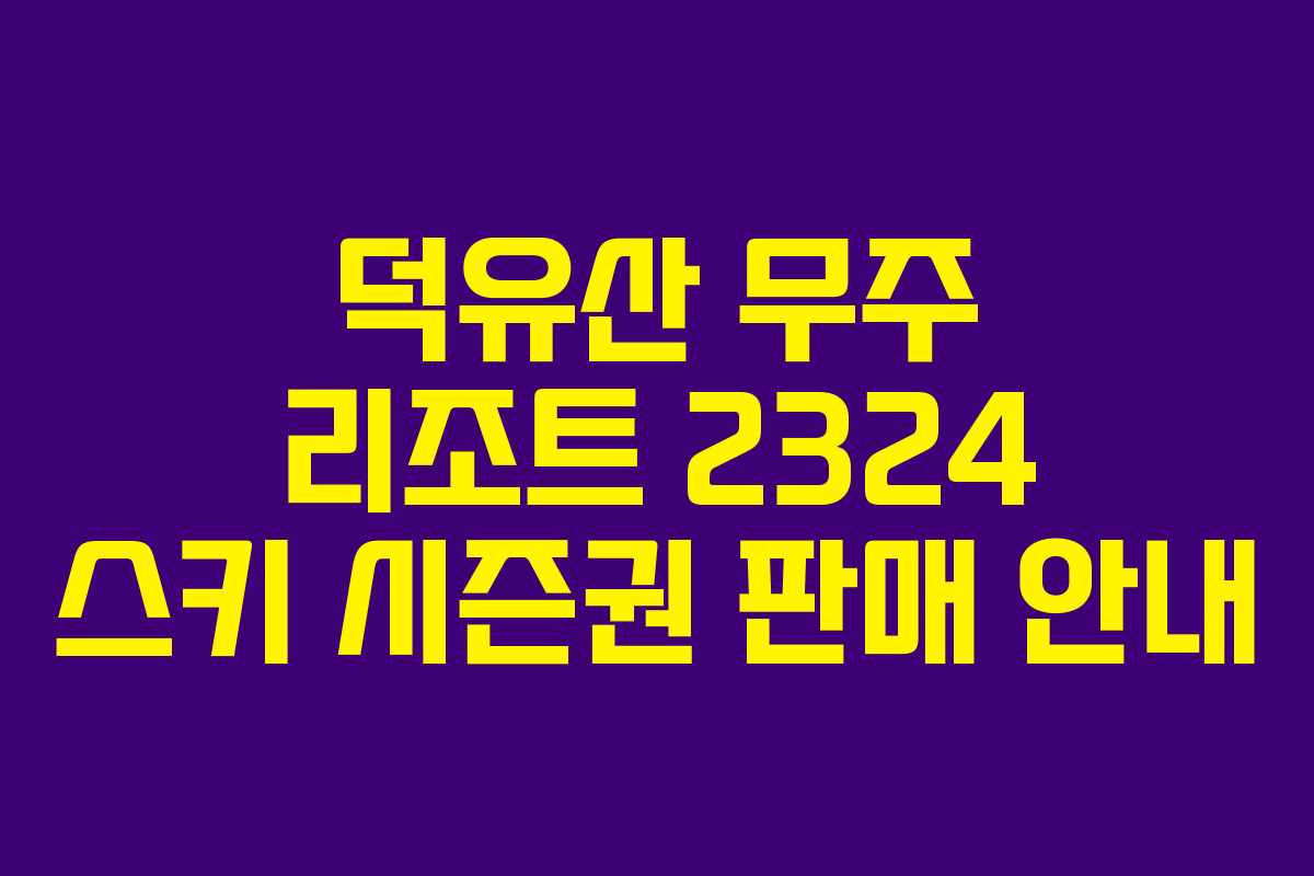 겨울이 다가오면서 스키 시즌권에 대한 관심이 높아지고 있습니다. 특히 덕유산 무주 리조트의 2324 스키 시즌권은 많은 스키어들에게 주목받고 있습니다. 이번 글에서는 무주 스키장 시즌권의 판매 일정, 가격, 혜택에 대해 자세히 살펴보겠습니다.