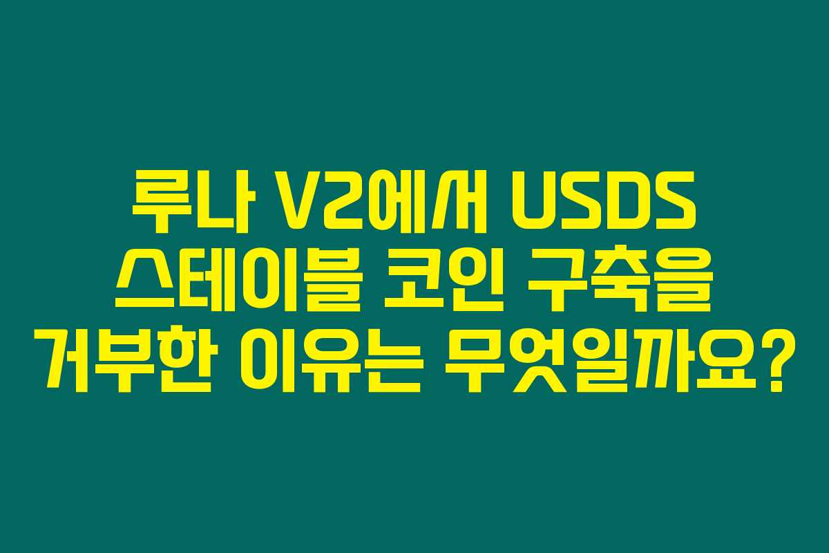 제가 직접 체크해본 바로는 최근 루나 V2에서 제안된 USDS 스테이블 코인 구축 거버넌스가 결국 거부되었습니다. 이 사건은 많은 투자자와 암호화폐 커뮤니티에서 논란이 되었습니다. 아래를 읽어보시면, 거버넌스 거부의 배경과 그로 인한 영향에 대해 자세히 알아볼 수 있습니다.