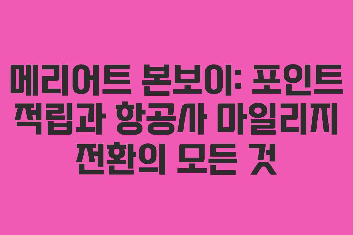 메리어트 본보이: 포인트 적립과 항공사 마일리지 전환의 모든 것