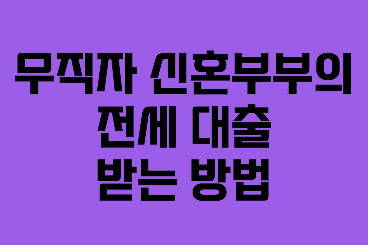 무직자 신혼부부가 전세 대출을 받을 수 있는 방법