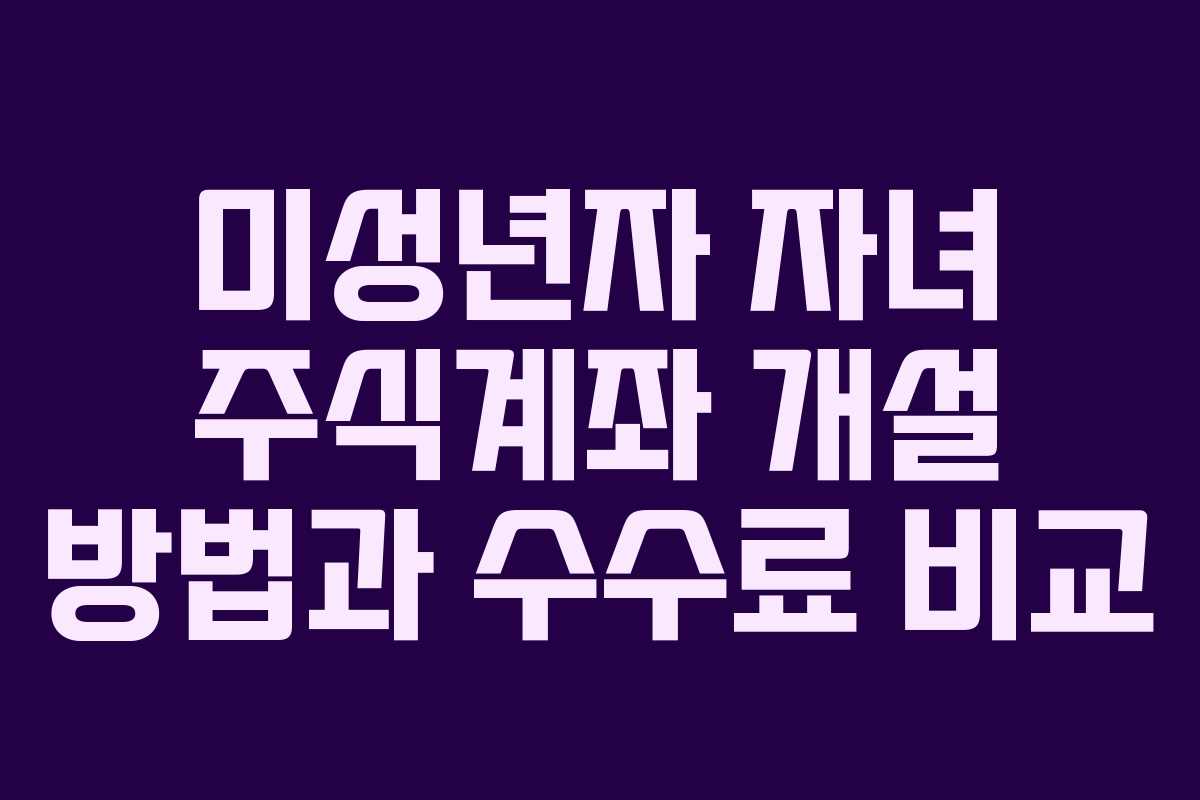 최근 자녀에게 경제 교육을 시키려는 부모들이 늘어나고 있습니다. 이에 따라 미성년자 자녀의 주식 계좌 개설에 대한 관심도 높아지고 있습니다. 이번 글에서는 자녀 주식계좌 개설 방법과 함께 증권사별 수수료 비교를 통해 보다 유리한 조건으로 계좌를 개설하는 방법을 안내하겠습니다.