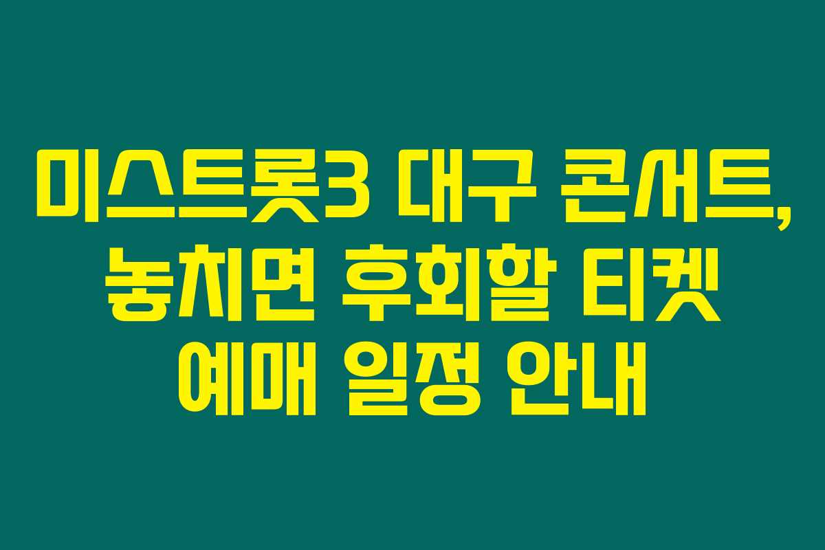 미스트롯3 대구 콘서트 티켓 예매는 어떻게 할 수 있을까요? 아래 정보를 확인해 보세요!