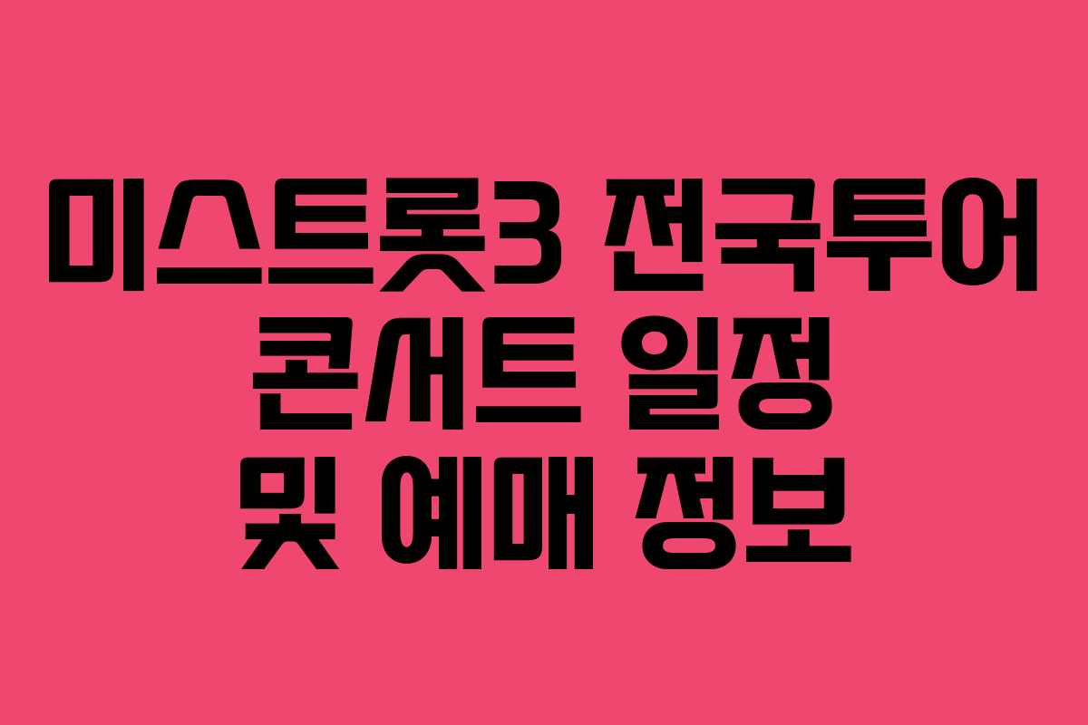 미스트롯3가 드디어 전국투어 콘서트로 돌아옵니다. 이 콘서트는 서울을 시작으로 부산, 대구, 창원, 대전, 광주, 성남, 인천, 울산, 춘천 등 총 10개 도시에서 진행될 예정입니다. 이번 글에서는 공연 일정, 티켓 가격 및 예매 방법을 상세히 안내드립니다.
