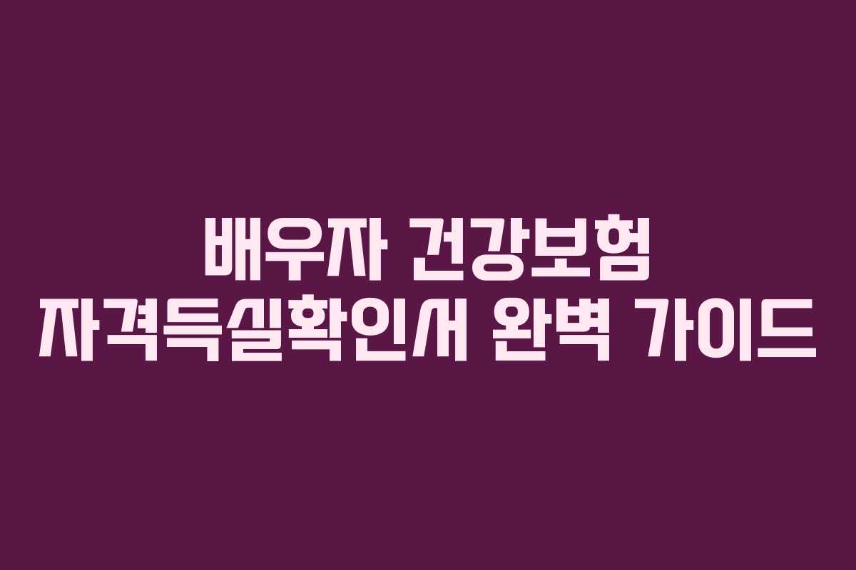 배우자 건강보험 자격득실확인서는 배우자가 건강보험에 가입되어 있는지 여부를 확인할 수 있는 공식 문서입니다. 이 문서는 주로 다음과 같은 경우에 사용됩니다.