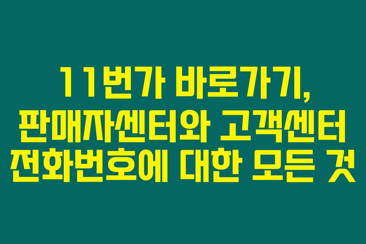 11번가 바로가기, 판매자센터와 고객센터 전화번호에 대한 모든 것
