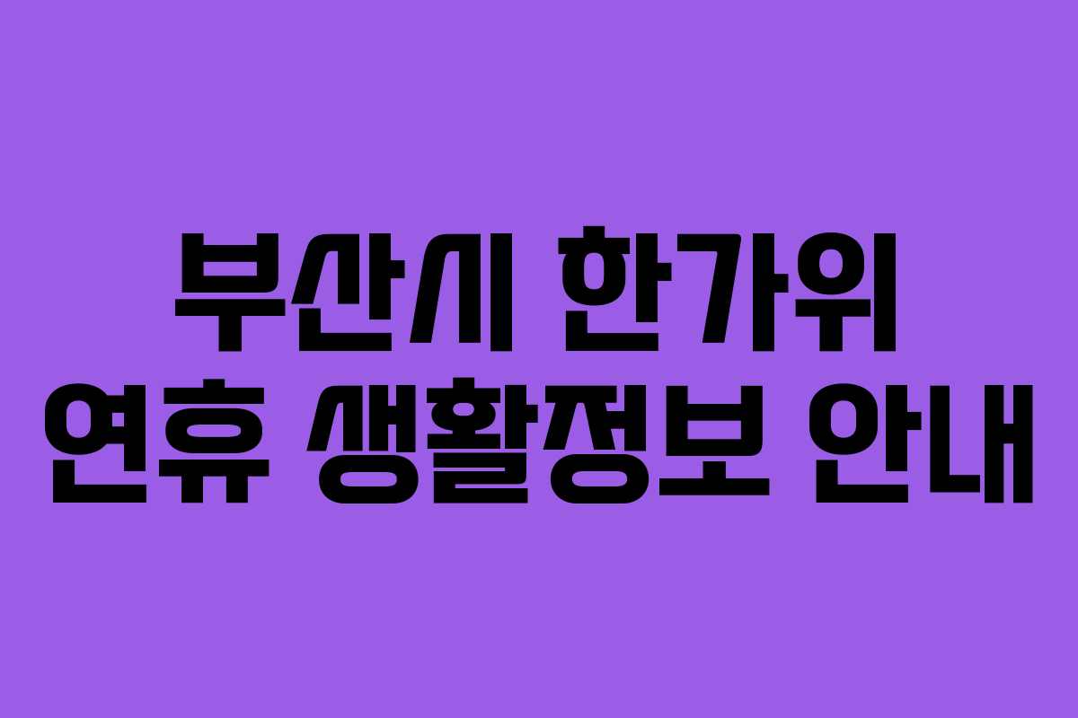 부산시는 2023년 한가위(추석) 연휴 동안 시민들이 편리하게 정보를 얻을 수 있도록 생활정보 안내 누리집을 운영합니다. 이 사이트는 9월 28일부터 10월 3일까지 열리며, 안전, 의료, 교통, 관광, 환경 등 다양한 분야의 정보를 제공합니다.