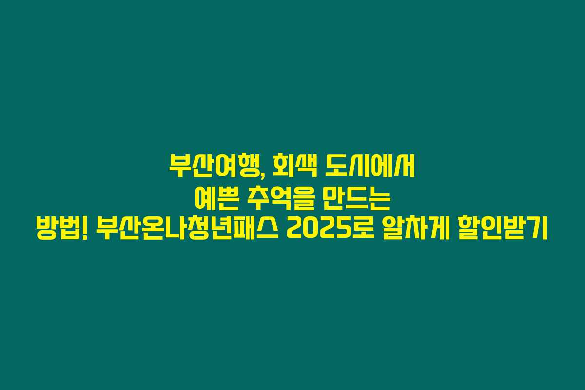 부산여행, 회색 도시에서 예쁜 추억을 만드는 방법! 부산온나청년패스 2025로 알차게 할인받기