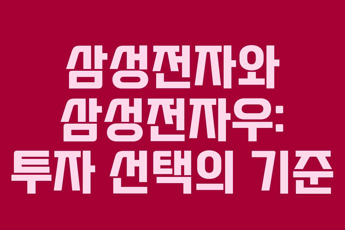삼성전자는 국내 주식 시장에서 가장 신뢰받는 우량주 중 하나로 인식되고 있습니다. 많은 투자자들이 삼성전자 주식을 보유하며 안정적인 수익을 추구하고 있습니다. 이 글에서는 삼성전자와 그 우선주인 삼성전자우의 차이점과 투자 전략에 대해 알아보겠습니다.