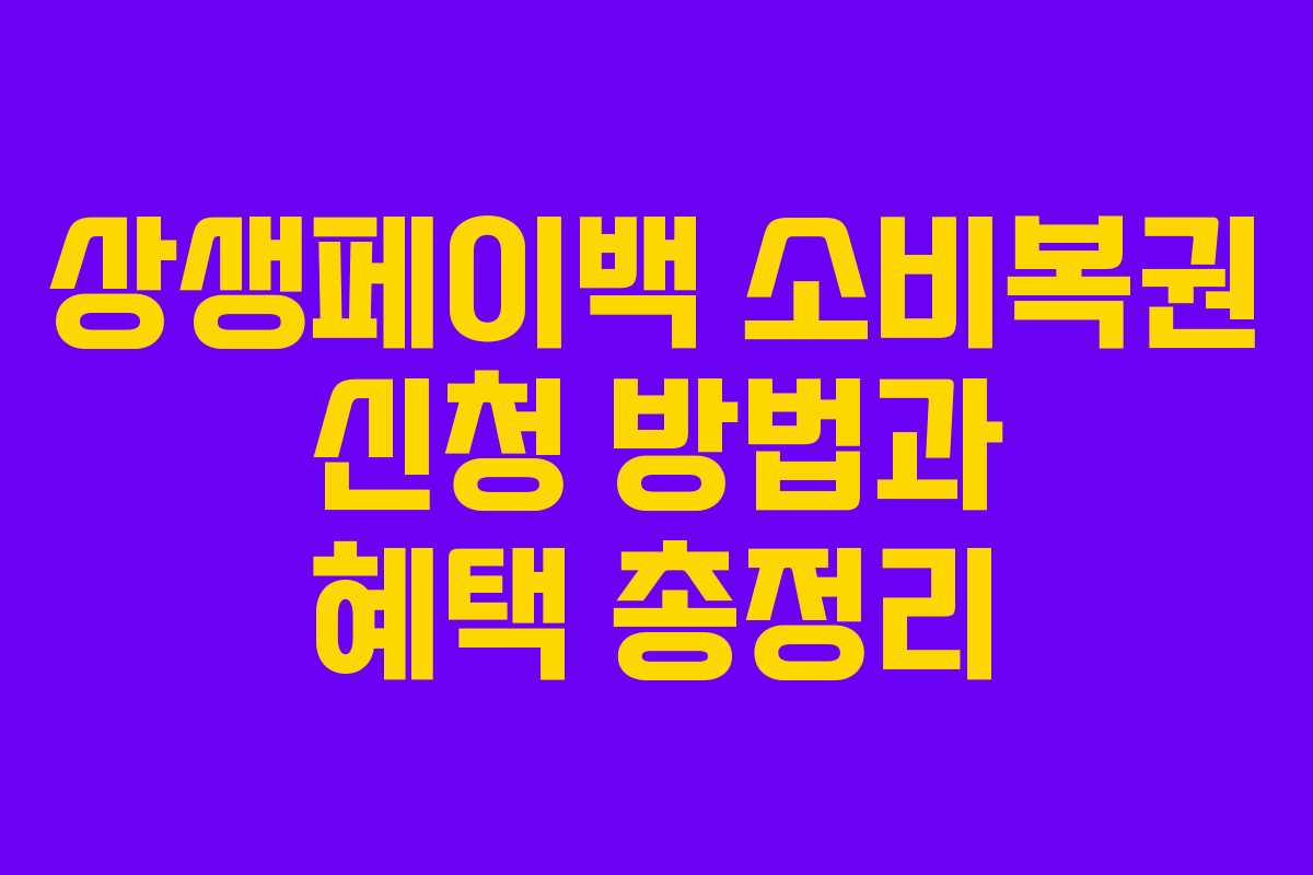상생페이백 소비복권은 소비를 통해 지역경제를 살리고, 소비자에게는 추가 혜택을 제공하는 제도입니다. 이번 글에서는 신청 방법, 참여 조건, 당첨 혜택 및 추첨 일정 등을 자세히 살펴보겠습니다.