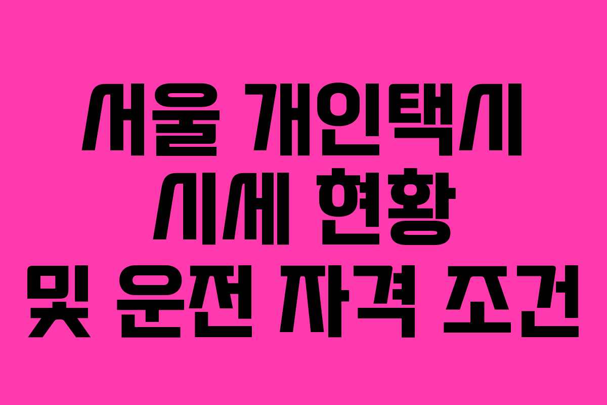 서울 개인택시 시세 현황 및 운전 자격 조건