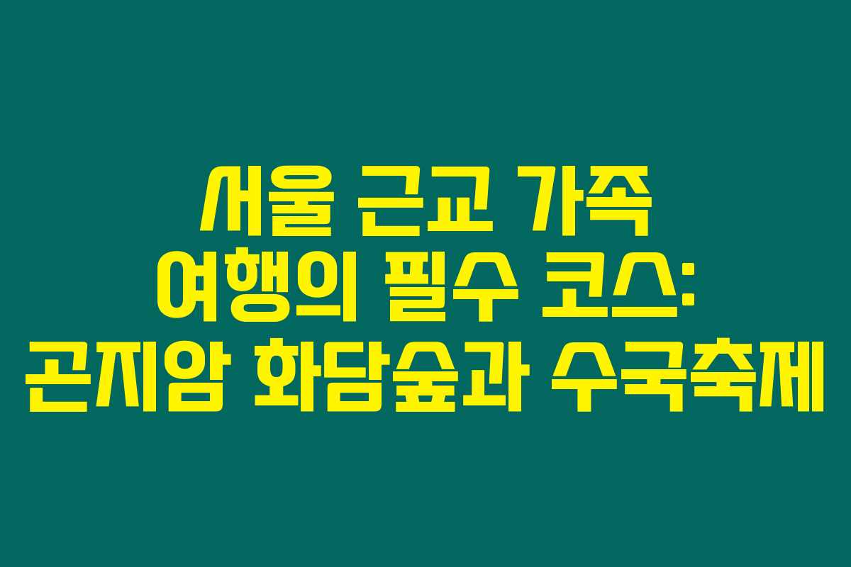 곤지암 화담숲은 서울 근교에서 쉽게 접근할 수 있는 가족 여행지로, 자연과 한껏 어우러진 멋진 추억을 만들어 줄 수 있는 곳이에요. 여름의 화려한 수국축제를 놓치지 말고 방문해 보세요. 언제나 새로운 즐거움이 기다리고 있답니다.