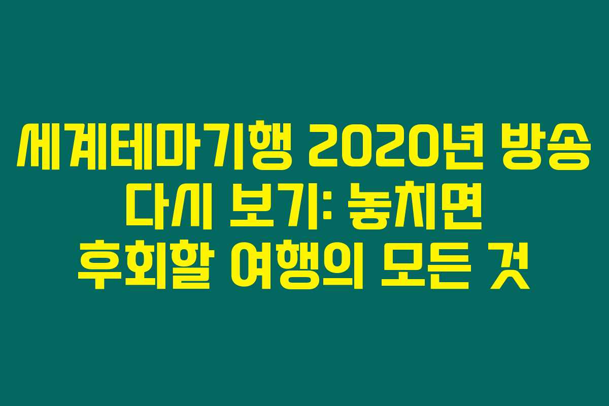 세계테마기행 2020년 방송 다시 보기: 놓치면 후회할 여행의 모든 것