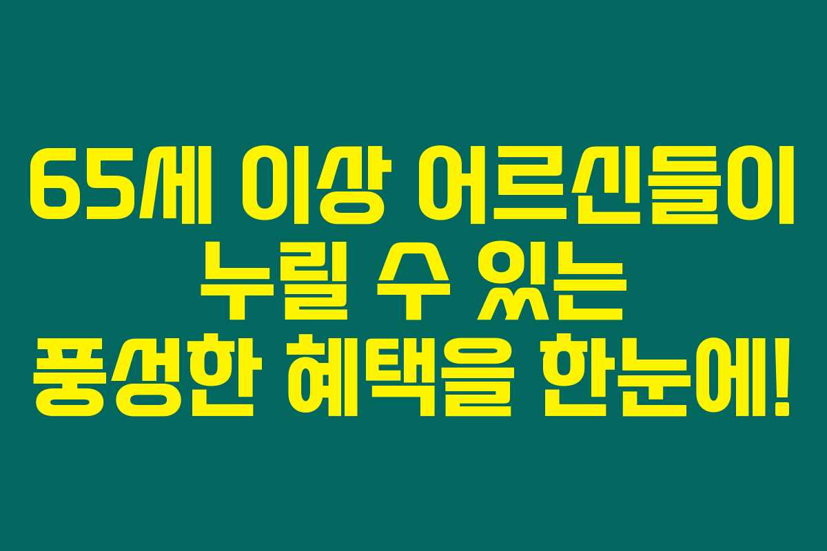 제가 직접 체크해본 바로는 65세 이상이 되면 받을 수 있는 다양한 정부 혜택이 정말 많습니다. 이는 노년기의 삶의 질 향상과 경제적 부담을 줄이기 위한 노력의 일환인데요, 오늘 이 글에서 어르신들이 이용할 수 있는 여러 혜택을 정리해보았습니다. 아래를 읽어보시면 65세 이상 노인 혜택에 대해 자세히 알 수 있을 거예요.