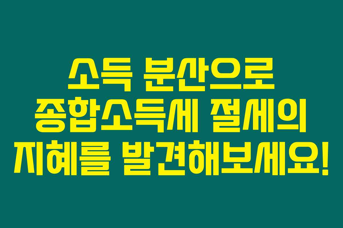 제가 직접 확인해본 결과로는 효과적인 소득 분산 전략을 활용하여 종합소득세를 절세하는 방법에 대해 알아보겠습니다. 다양한 소득 분산 방식을 통해 세액 공제를 쉽게 받을 수 있는 방법과 주의사항을 함께 살펴볼 예정입니다. 이 글을 통해 소득 관리를 더욱 현명하게 할 수 있는 방법을 배우실 수 있을 것입니다.