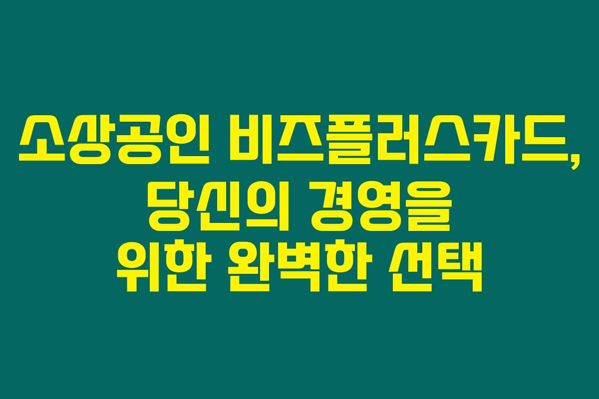 제가 직접 경험해본 결과로는, 소상공인 비즈플러스카드는 적은 자본으로 경영하는 소상공인에게 매우 유용한 금융 도구입니다. 이 카드는 다양한 혜택과 지원을 통해 비용 부담을 줄여주며, 신청 조건도 비교적 유연해 많은 소상공인들이 쉽게 접근할 수 있습니다. 아래를 읽어보시면 비즈플러스카드의 조건과 신청 방법, 혜택에 대한 정보를 알차게 정리해 드릴게요.