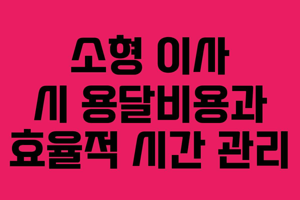 소형 이사는 1인 가구의 증가로 인해 점점 더 많은 사람들이 선택하는 이사 방식입니다. 이 글에서는 소형 이사 시 발생하는 용달비용과 효율적인 시간 관리를 위한 방법에 대해 알아보겠습니다.