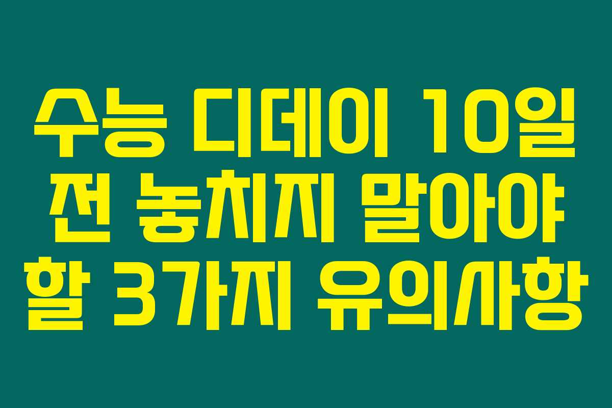 수능 10일 전 준비사항을 생각중이라면 놓치지 말아야 할 것들이 있습니다. 11월 14일 수능일이 다가오면서 초조와 긴장감이 커지는데요. 수능일 당일 날 컨디션을 최대한 좋게 유지하고 시험에 최적화된 상태로 임하기 위해 아래의 3가지 유의사항을 체크해 보시기 바랍니다.