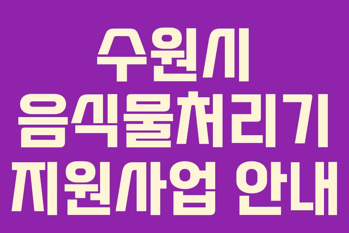 수원시는 가정에서 발생하는 음식물쓰레기 문제를 해결하기 위해 음식물처리기 지원사업을 운영하고 있습니다. 이 사업은 가정에서 직접 음식물쓰레기를 처리할 수 있도록 돕고, 처리 비용 부담을 줄이기 위한 것입니다.