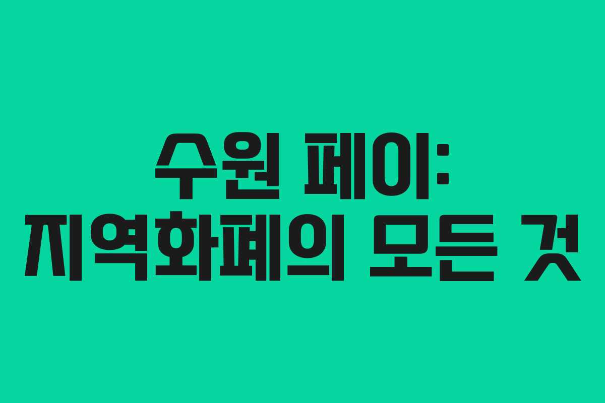 수원 페이는 수원시가 지역 경제 선순환을 촉진하기 위해 발행한 지역화폐로, 2019년 4월부터 사용되고 있습니다. 충전식 선불카드 형식으로 제공되며, 개인과 소상공인 모두에게 다양한 혜택을 제공합니다.