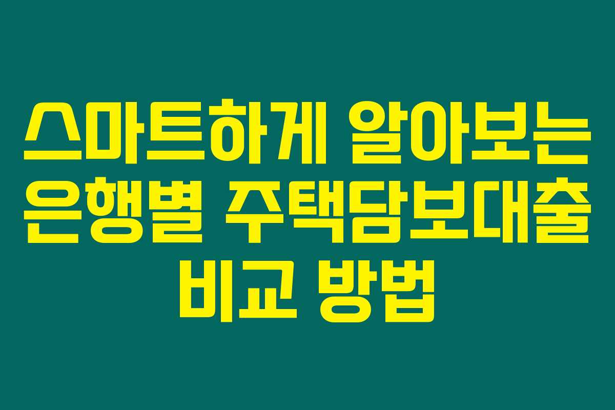 은행별 주택담보대출 비교는 복잡할 수 있지만, 위의 방법들을 통해 더 스마트한 선택을 하실 수 있기를 바랍니다!
